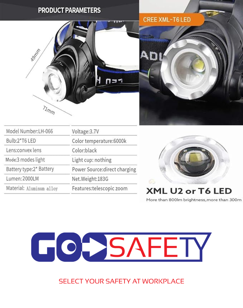 Sku: مصباح خوذة رأس LED مقاوم للماء 2000 ليومنز